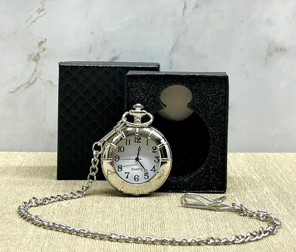Özel Kutulu Gümüş Köstekli Saat Gümüş kaplaması ve klasik cep saati formuyla zarif bir nostalji vizyonu sunan Özel Kutulu Gümüş Köstekli Saat , hem tarz hem de fonksiyon açısından öne çıkıyor. 4×5 cm boyutuyla cepte taşınabilecek kadar kompakt; özel kutusuyla hediye olarak da sunulabilecek hazır bir seçenek. Koleksiyon koleni tamamlayacak ya da masaüstü dekorasyonunda prestij katacak bir aksesuar.Ürün ÖzellikleriBoyut: 4 × 5 cm Model: Gümüş Köstekli Cep Saati Paket İçeriği1 adet Özel Kutulu Gümüş Köstekli Saat ALK468